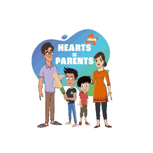 a cartoon of a family standing next to each other with the words " hearts parents " above them