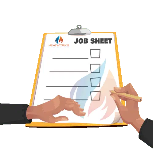 A Heatworks Plumbing man, identified as hwshaun or shaunheatworks, with arms crossed, celebrating 'Job Done'.