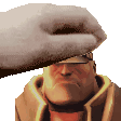 A pixel art Heavy Guy character receives a gentle 'petpetpet' as a hand places a small hat on his head.