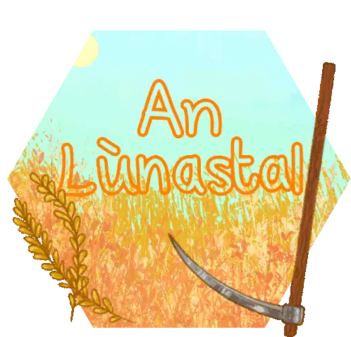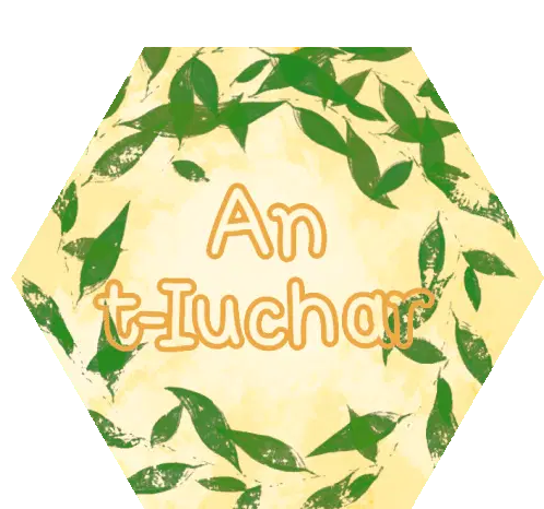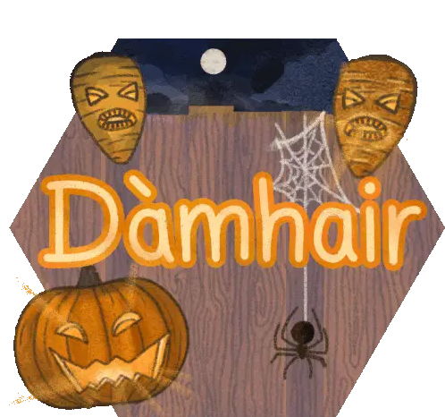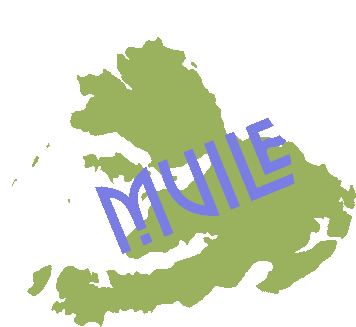 Animated sticker featuring a green map of the Isle of Mull with the Gaelic word 'Muile' in purple, representing Scottish Gaelic culture.