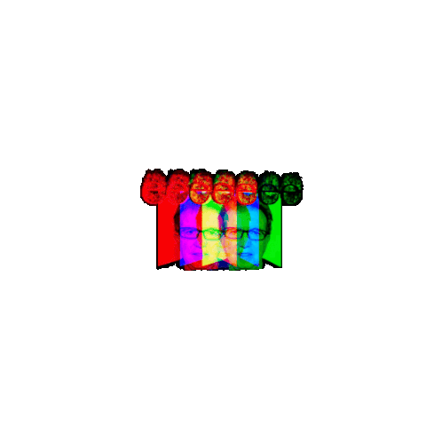 Hector Zamarguilea's animated sticker features abstract red, blue, and green shapes that expand into a vibrant colored line.