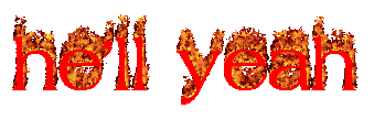 Animated text 'HELL YEAH' appears in vibrant red flames, expressing enthusiasm and agreement.