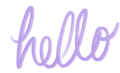 The word "hello" is beautifully written in a flowing, light purple cursive script, appearing with a soft watercolor effect.