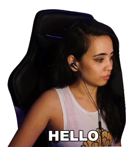Gamer Katcontii, also known as roguegg, greets viewers with a friendly 'HELLO' while wearing headphones.
