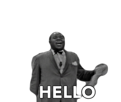 Louis Armstrong waves and says hello in this classic black and white greeting sticker.