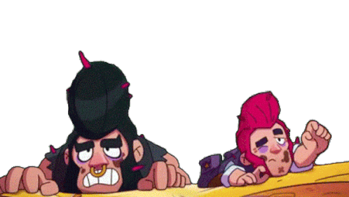 Bull and Colt from Brawl Stars are shown injured and exhausted, lying on the ground, needing help.