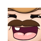 Hen RYA Nand's iconic Kekw laugh, featuring his signature mustache and big smile, in a funny animated sticker.