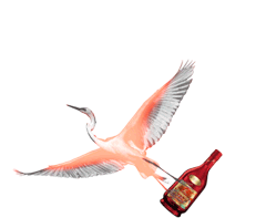 A vibrant pink bird, possibly a flamingo, flies with a bottle of Hennessy, celebrating Chinese New Year.