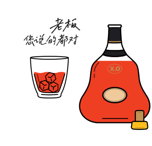 A Hennessy XO bottle and glass with ice, featuring Chinese text 'Boss, everything you say is right,' perfect for Mid-Autumn Festival.