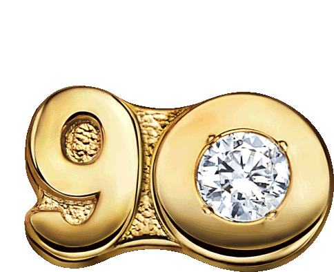 A sparkling golden pin featuring the number 90 with a diamond, representing Herbalife 90k recognition.