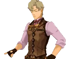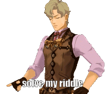Herlock Sholmes points upwards, challenging viewers to solve his riddle with a confident expression.