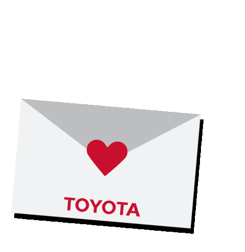 An animated Toyota envelope opens to reveal 'Gute Besserung' (Get well soon) and then closes with a heart.