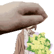 Hetalia Czechia, the animated character, holds a beautiful bouquet of pink flowers, smiling gently.