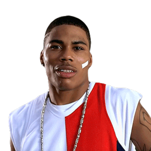 Nelly, also known as Cornell Iral Haynes Jr, waves with a bandage on his face, wearing a red, white, and blue shirt.