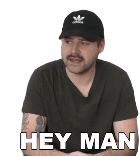 Jared Dines, wearing a black Adidas cap, greets with a casual "Hey Man" and a slight nod.