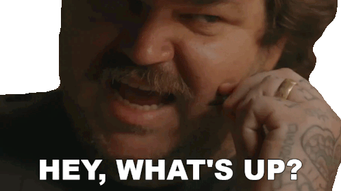 Matty Matheson, the chef, looks directly at the viewer and asks 'Hey, what's up?' with a friendly, inquisitive expression.