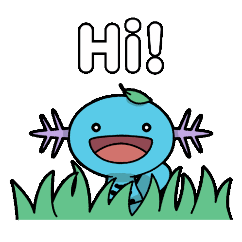 A cute Pokémon Wooper peeks from the grass to say hi and hello, a friendly greeting sticker.