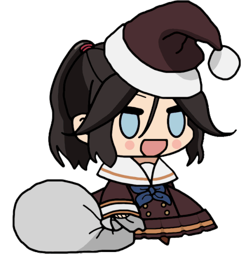 A cute chibi anime girl from Hibike! Euphonium in a Padoru Santa outfit, carrying a sack and looking cheerful.
