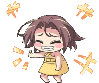 An adorable cartoon character in a yellow chick costume holds a delicate pink flower, offering a sweet gesture.