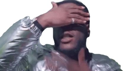 Burna Boy performs a stylish 'hide and look' dance move, covering and revealing his face while wearing a shiny jacket.