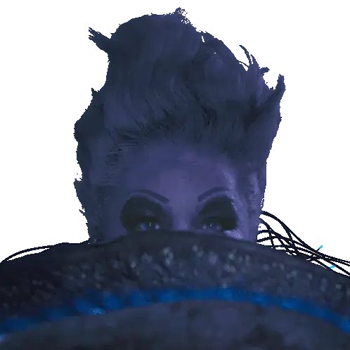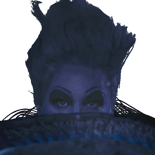 Ursula, portrayed by Melissa McCarthy, peeks from the shadows with her piercing eyes, a mischievous look from The Little Mermaid.