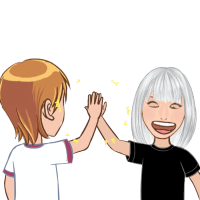 An animated sticker of a boy and a girl happily giving each other a high five, conveying celebration or agreement.