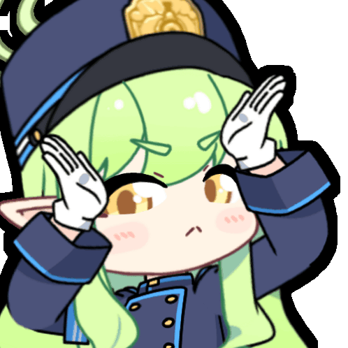 Hikari, the green-haired anime girl in a conductor uniform, makes a confused or questioning gesture with her hands.