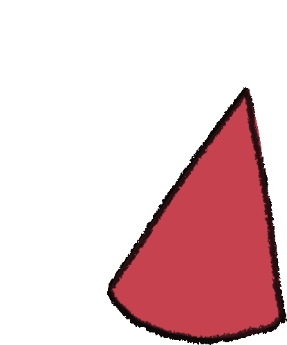 A wiggling red triangular hat, possibly Hilda's, with a black outline, moving playfully.