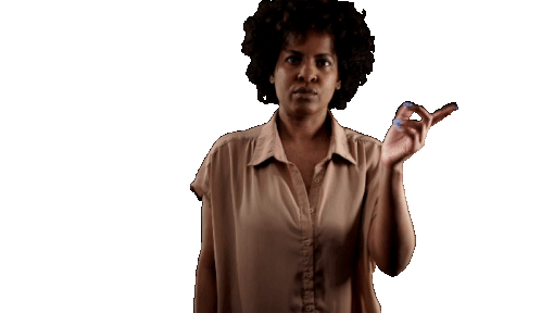 Hillynne Milajanson expresses disapproval with a firm finger wag, conveying a clear 'no' or 'nope'.