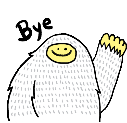 Himalayeti, the friendly yeti character, waves goodbye with a smile and the word 'Byeeee'.