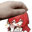 Himeko from Honkai Star Rail receives gentle head pats, reacting with a cute blush and happy expression.