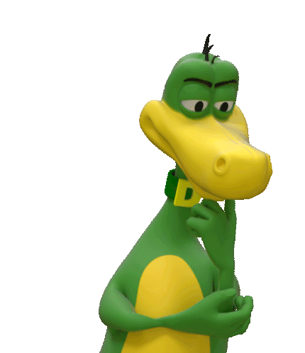 The Hiperdino Superdino mascot, a green dinosaur, points upwards with a thoughtful expression, perfect for indicating an idea or direction.