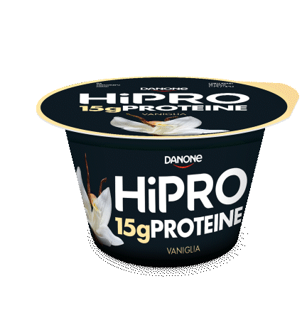 A Danone HiPRO blueberry yogurt cup, packed with 15g of protein, perfect for a healthy and delicious snack.