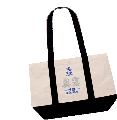 Animated sticker featuring a white and black Jinro Soju tote bag with the brand's logo and text.