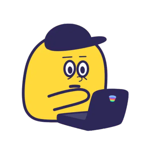 Hitopotato diligently types on a laptop, peeking up briefly before returning to intense concentration.