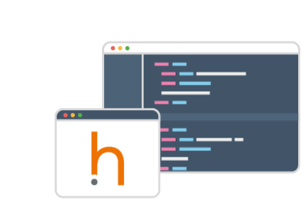 An animated sticker featuring the orange Hive logo alongside a window displaying lines of code, representing software development and Hivelog.