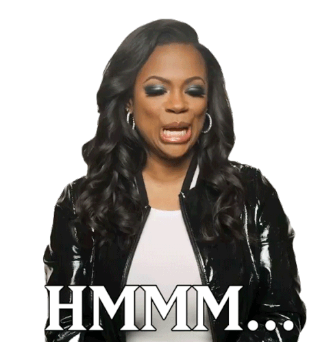 Kandi Burass makes a thoughtful 'Hmmm...' expression, pondering or wondering with a slightly skeptical look while wearing a black jacket.