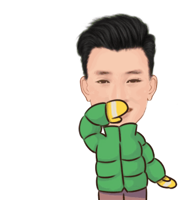 Hoang Dinh, a cartoon man in a green jacket and yellow mittens, waves cheerfully with 'Hello~' above his head.
