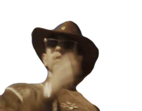 Bejo, wearing a cowboy hat and sunglasses, tips his hat in a friendly greeting, saying "Hola."