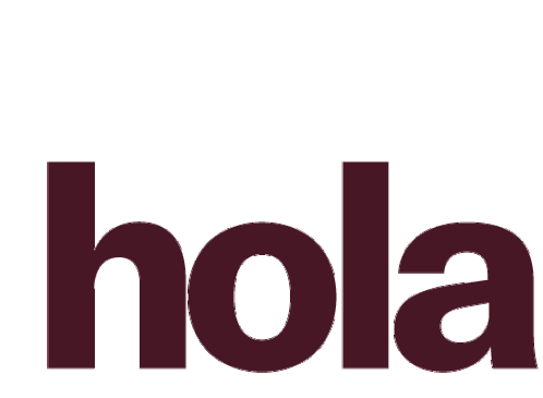 A friendly greeting sticker featuring the word 'hola' in bold burgundy letters on a clean white background.