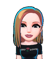 An animated cartoon woman with long hair, wearing a "LOST LOVER" shirt, winking and blowing pink hearts.