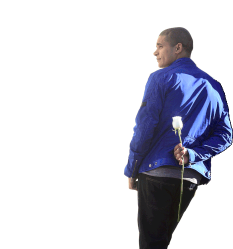 German Vega, from "Hit The Floor" and known as Lil J, holds a white rose behind his back, looking over his shoulder.