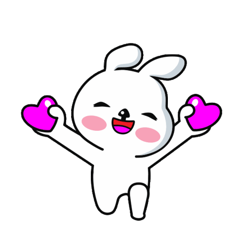 A cute white bunny character in a playful, dynamic pose, expressing a smitten or 'holic' feeling.