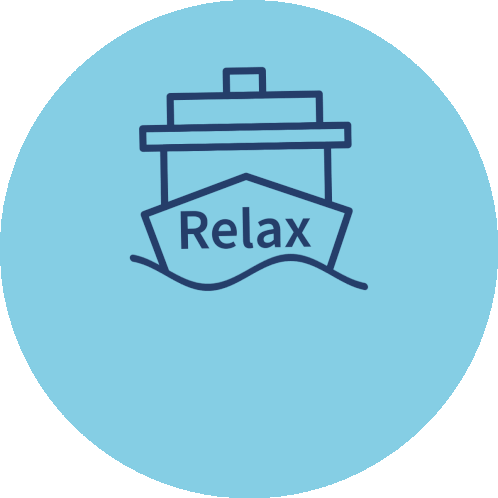 An animated sticker featuring a blue circle with a cruise ship icon and the text 'Mein Schiff Relax' for a relaxing holiday.