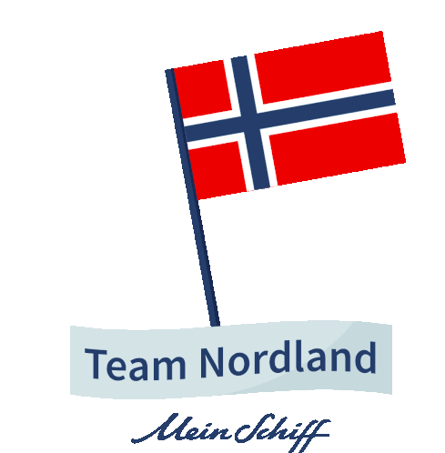 Animated sticker featuring the flags of Norway and Iceland, 'Team Nordland' and 'Mein Schiff' cruise branding.