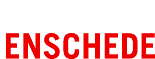 Animated red text spelling 'ENSCHEDE', representing the Dutch city and the 'Uit In Enschede' campaign.