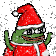 Animated pixel art sticker of Peepo Santa frog wearing a hat and sunglasses in a snowy winter scene.