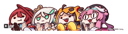 The Holojustice group from Hololive, featuring Cecilia Immergreen, Elizabeth Rose Bloodflame, Gigi Murin, and Raora Panthera, animated.