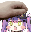 Tokoyami Towa, the purple-haired Hololive VTuber, happily receives a gentle headpat in this adorable animated sticker.