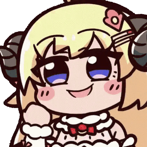 Tsunomaki Watame from Hololive, a cheerful chibi anime girl with horns and blonde hair, smiling brightly.